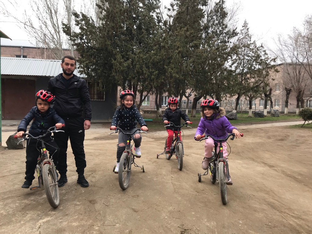 Այսօր հեծանվասպորտի մարզիչ Հրայր Հովհաննիսյանի հետ միասին ունեցանք հեծանվային պարապմունք: Ընկեր Հրայրը սաներին սովորեցրեց ինչպես ճիշտ վարել հեծանիվ` հետևելով անվտանգության կաննոներին: Այսօր փորձեցինք քառանիվ հեծանիվից անցում կատարել երկականիի: Արդյունքը` տեսանյութում: