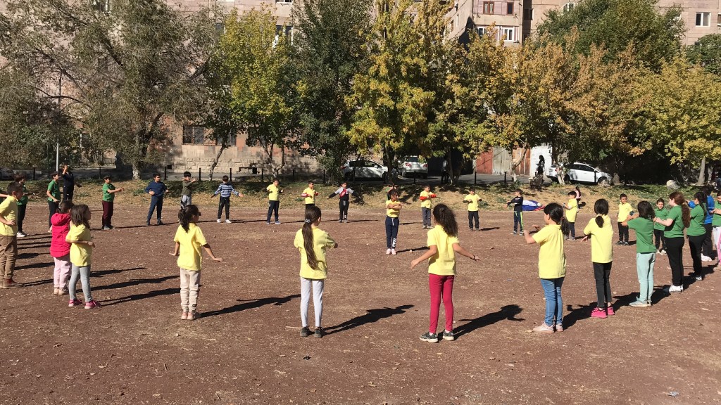<<Սպորտլանդիա>> նախագծի շրջանակում իրականացրեցինք մարզական խաղեր՝ համագործակցելով Հյուսիսային դպրոց — պարտեզի 4-5-րդ դասարանի սովորողների հետ։ Համագործակցության հիմնական նպատակը թիմային աշխատանքն էր և մարզական հմտությունների փոխանակումը։