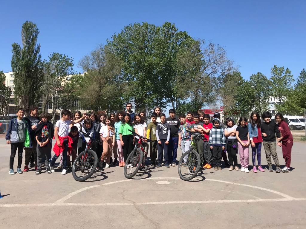 Այսօր 5.2 դասարանում մարզական ստուգատեսի օր էր: Մայր դպրոցի «Սեբաստիա» մարզադաշտում իրականացրեցինք համագործակցային մարզական-հեծանվային ստուգատես՝ Արևմտյան և Հյուսիսային դպրոցի սովորողների միջև: Ընկեր Ֆրունզը կազմակերպեց հեծանվային էստաֆետա:,որի ժամանակ հաղթահարեցին հեծանիվներով զիգզագաձև անցումները: